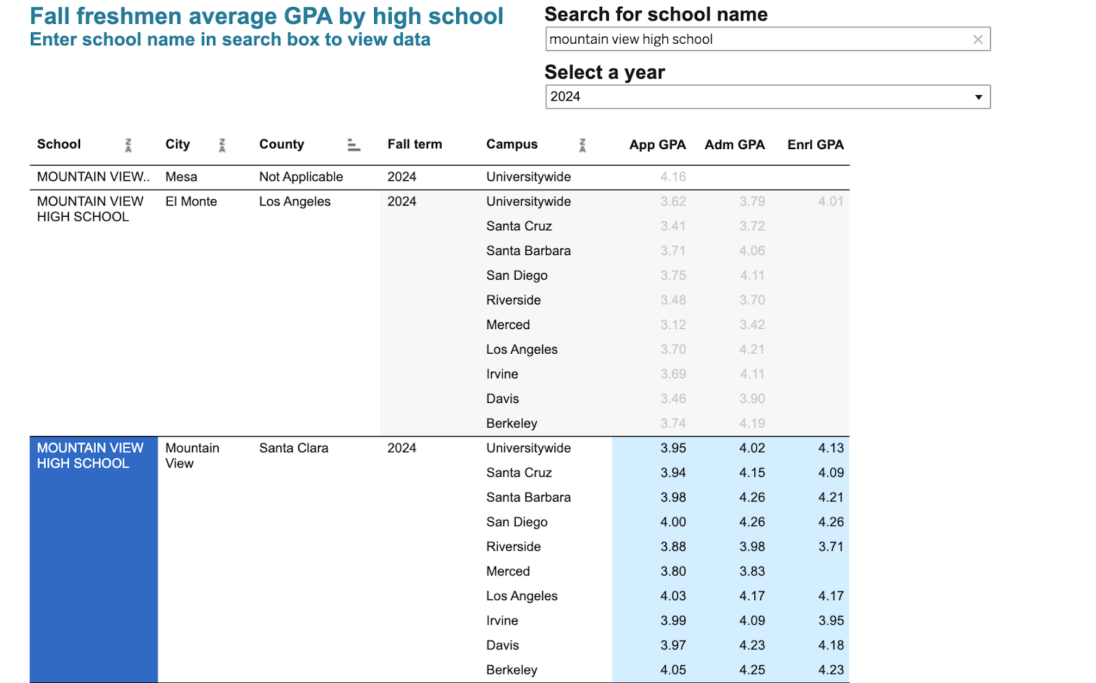 MVHS students aren’t competing against “every kid in California.” They’re mainly being read against current and past MVHS students. That’s a narrower, more manageable context to develop your application strategy in—and one where school selection and storytelling have real leverage.